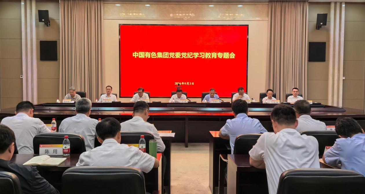 9月3日,中国有色集团党委召开党纪学习教育专题会议,深入学习贯彻习近平总书记近期关于党纪学习教育的重要讲话和重要指示精神,深化落实党中央和国资委党委有关会议精神,系统总结集团公司党纪学习教育成效,对推动党的纪律教育常态化长效化进行安排,充分发挥纪律建设对坚持党的领导、加强党的建设、推进集团公司事业的保障作用,以忠诚干净担当的实际行动推动企业高质量发展。集团公司党委书记、董事长,党建工作领导小组组长文岗在会上作总结讲话,集团公司党委副书记、总经理张晋军传达上级有关精神,集团公司领导班子成员出席会议。