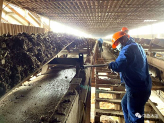 中色大冶矿业分公司铜绿山矿选矿车间团员青年志愿者回收废旧托辊、支架,进行再利用