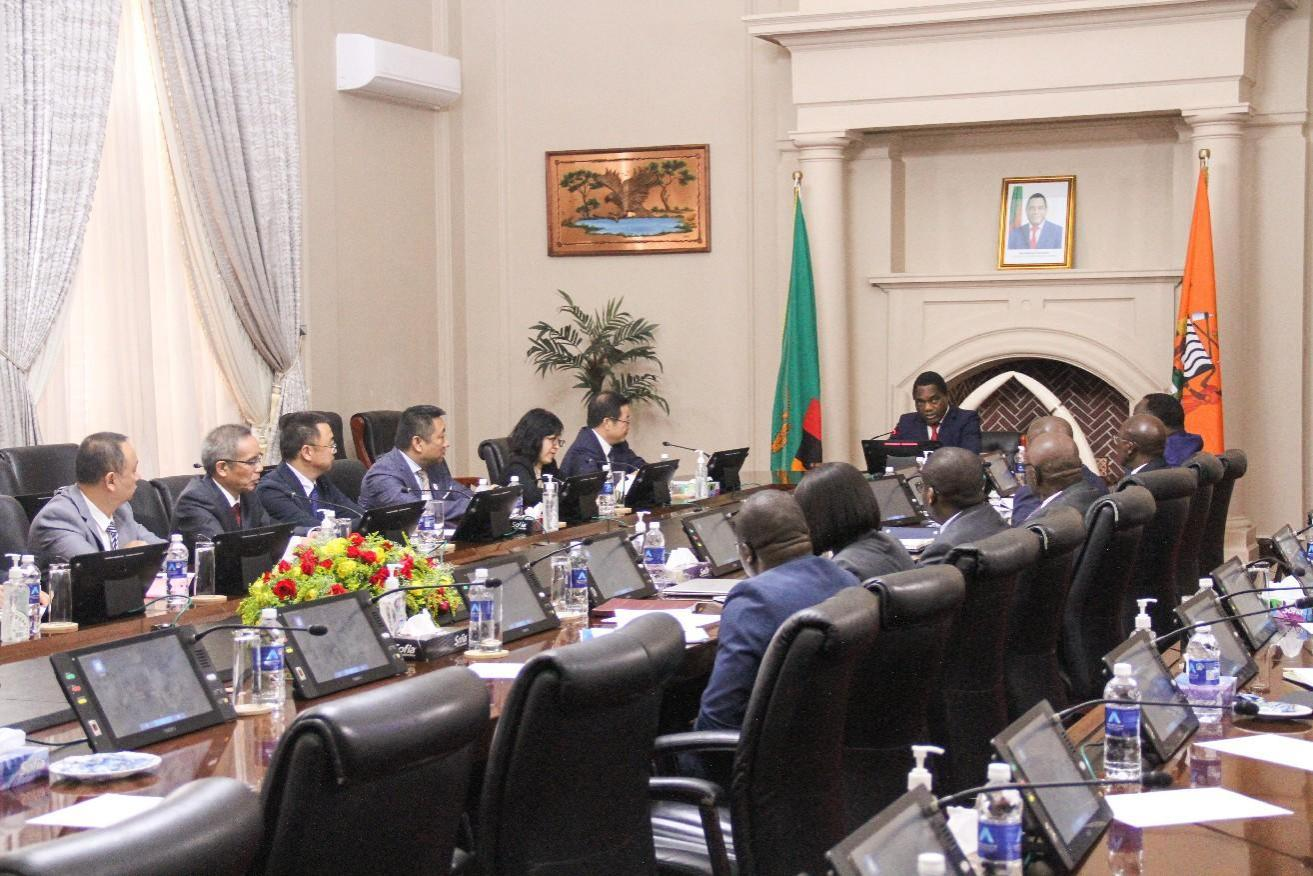 当地时间11月12日,正在赞比亚调研的中国有色集团董事长文岗在卢萨卡拜会赞比亚总统哈凯恩德·希奇莱马。这是继9月3日在北京会谈后,文岗与希奇莱马总统的第二次会面,体现了中国有色集团积极响应习近平主席同希奇莱马总统就中赞建交60周年互致贺电精神,全面落实中非合作论坛成果,深化践行“一带一路”倡议,持续加大在赞投资力度,深化在矿业领域的各类合作,为发展新时代中赞全天候友谊贡献力量。