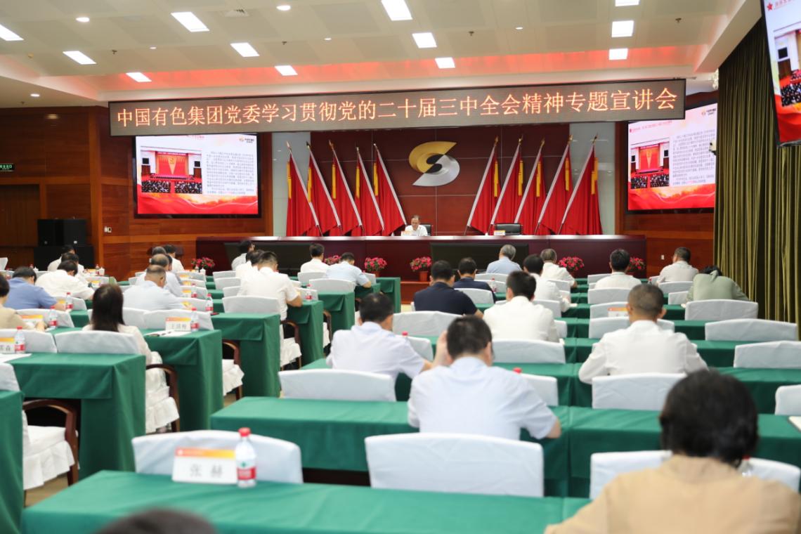 按照中央关于认真学习宣传贯彻党的二十届三中全会精神的有关部署和国资委党委要求,根据集团公司党委安排,8月14日,中国有色集团党委召开学习贯彻党的二十届三中全会精神专题宣讲会。中国有色集团党委副书记、总经理张晋军作专题宣讲,强调要更加深刻领悟“两个确立”的决定性意义,不断增强“四个意识”、坚定“四个自信”、做到“两个维护”,持续深化党的二十届三中全会精神学习领会、贯彻落实,牢记“国之大者”,进一步增强核心功能,提升核心竞争力,为以中国式现代化全面推进强国建设、民族复兴伟业作出新的更大贡献。中国有色集团党委委员、纪委书记范圣权主持会议。