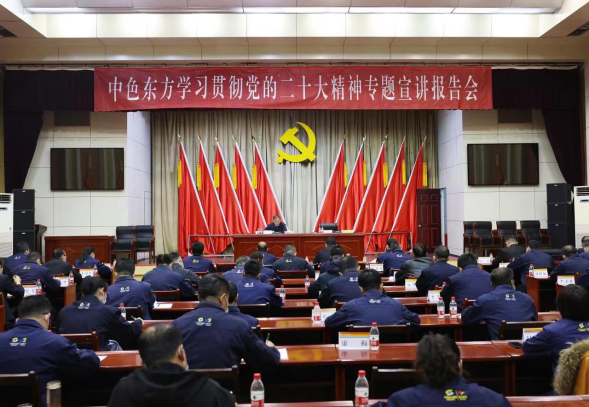 为深入学习宣传贯彻党的二十大精神,根据宁夏自治区党委统一部署,11月17日,自治区宣讲团成员、自治区政协副主席冯志强在中国有色集团出资企业中色(宁夏)东方集团有限公司(简称:中色东方)作党的二十大精神专题宣讲报告。中色东方党委书记、董事长李春光主持,石嘴山市政协主席魏和清出席会议。