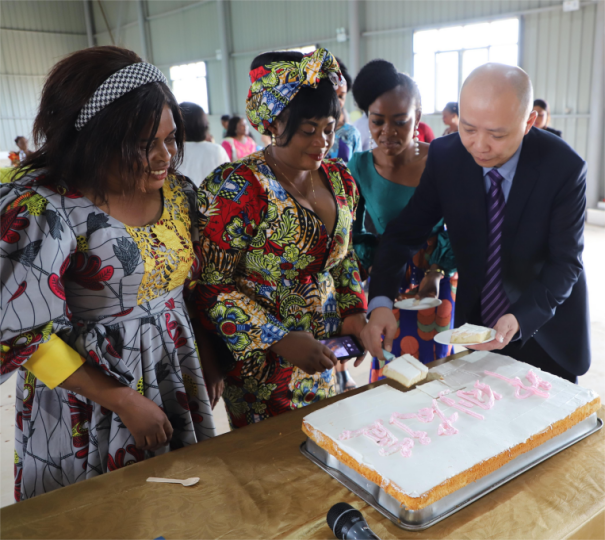 活动中,中色刚果有关领导同志与刚方员工一起切下见证中刚友谊的蛋糕,在音乐中一起舞蹈,众人在欢声笑语中共同庆祝了“三八”国际劳动妇女节。