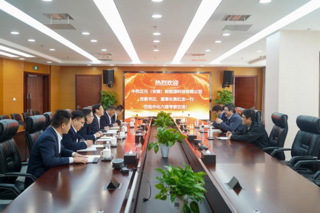 在中化六建,焦红忠介绍了中色正元项目建设进度情况。他表示,中色正元项目是落实中国有色集团“做精材料”战略,当好保障有色金属新材料安全主力军的重点项目,希望发挥中化六建专业优势,齐心协力共同推进设备安装调试。双方会谈达成一致意见,中化六建将通过优化现场施工组织、增加施工人员、调配优势力量保障设备安装调试等措施,全力保障中色正元项目高质量完成竣工投产目标。