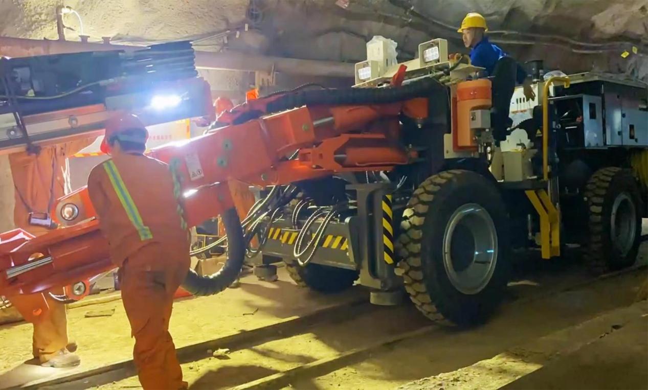 图为中色大冶铜绿山矿井下凿岩台车正在组装