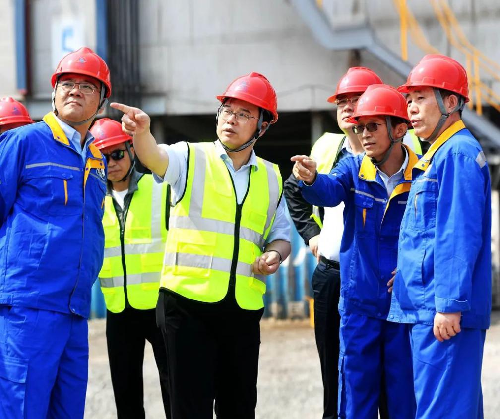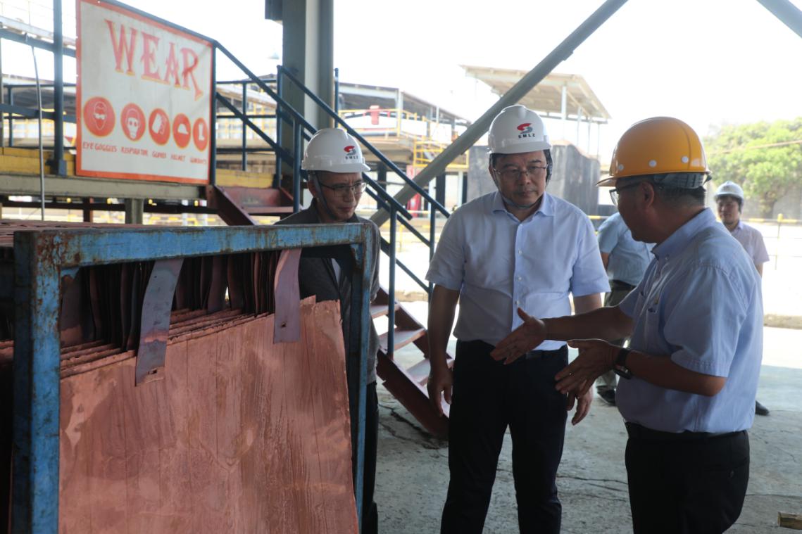 在谦比希铜冶炼,奚正平董事长一行参观公司展厅、办公区,现场调研熔炼分厂转炉渣临时存放点、铜产品堆场和3号阳极炉,边调研、边提问、边指导,就公司如何践行“1+4”发展战略提出了具体工作意见。