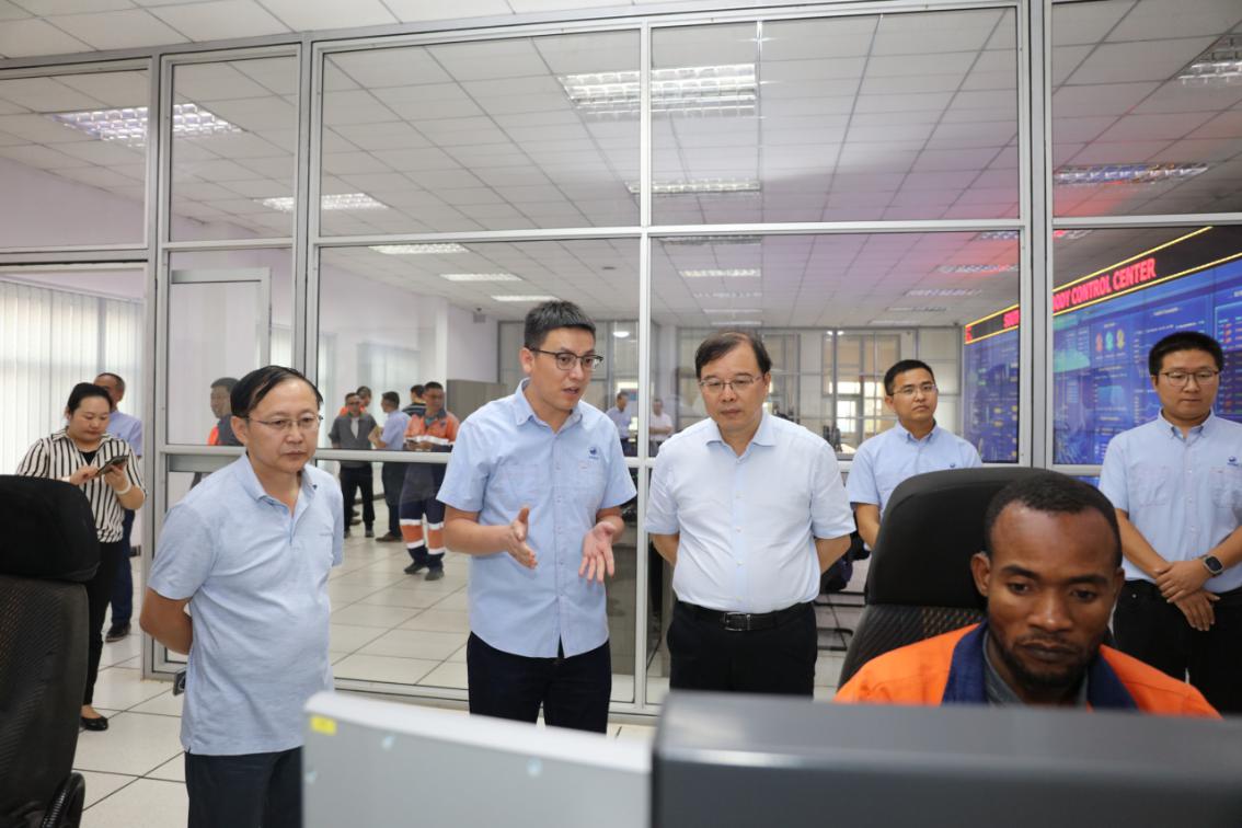 在中色香港控股,奚正平董事长一行深入马本德矿山、尾矿库、球磨车间、铜成品库、职工餐厅及华鑫湿法沉钴车间等进行了实地调研,详细了解了下设两个子企业科技创新、生产工艺流程、经济技术指标、安全环保等情况。