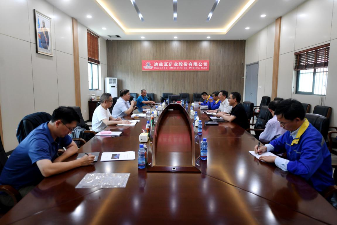 在迪兹瓦矿业,奚正平董事长一行驱车前往尾矿库、浸出分厂、钴分厂、生产指挥中心、堆浸实验区、质检中心、医务室、员工生活区等地调研,认真察看工艺流程,了解企业科技创新现状,召开生产一线员工座谈会。当天下午,奚正平董事长还亲切会见了中色十五冶、中色桂林矿地院等出资企业在刚项目部负责人,听取工作汇报并提出相关工作要求。