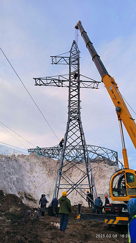 图丨党员干部冒着严寒架设被雪崩冲倒的外线电塔
