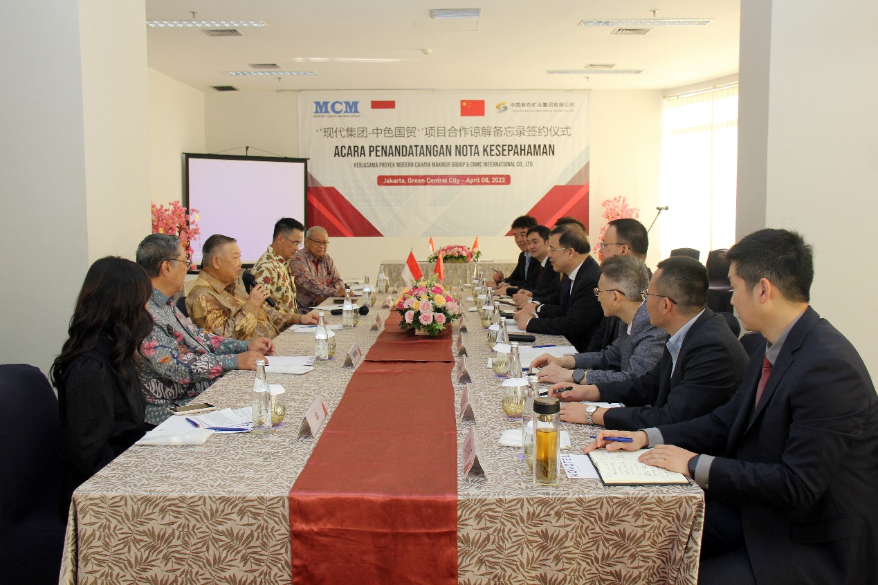 在印尼期间,奚正平董事长一行拜访了印尼Modern集团,对Modern集团的发展及现状、印尼矿产资源、经济产业情况进行了深入交流,出席了“现代集团-中色国贸”项目合作谅解备忘录签约仪式。工作组一行对Modern雅加达Cikende工业园进行了实地考察。