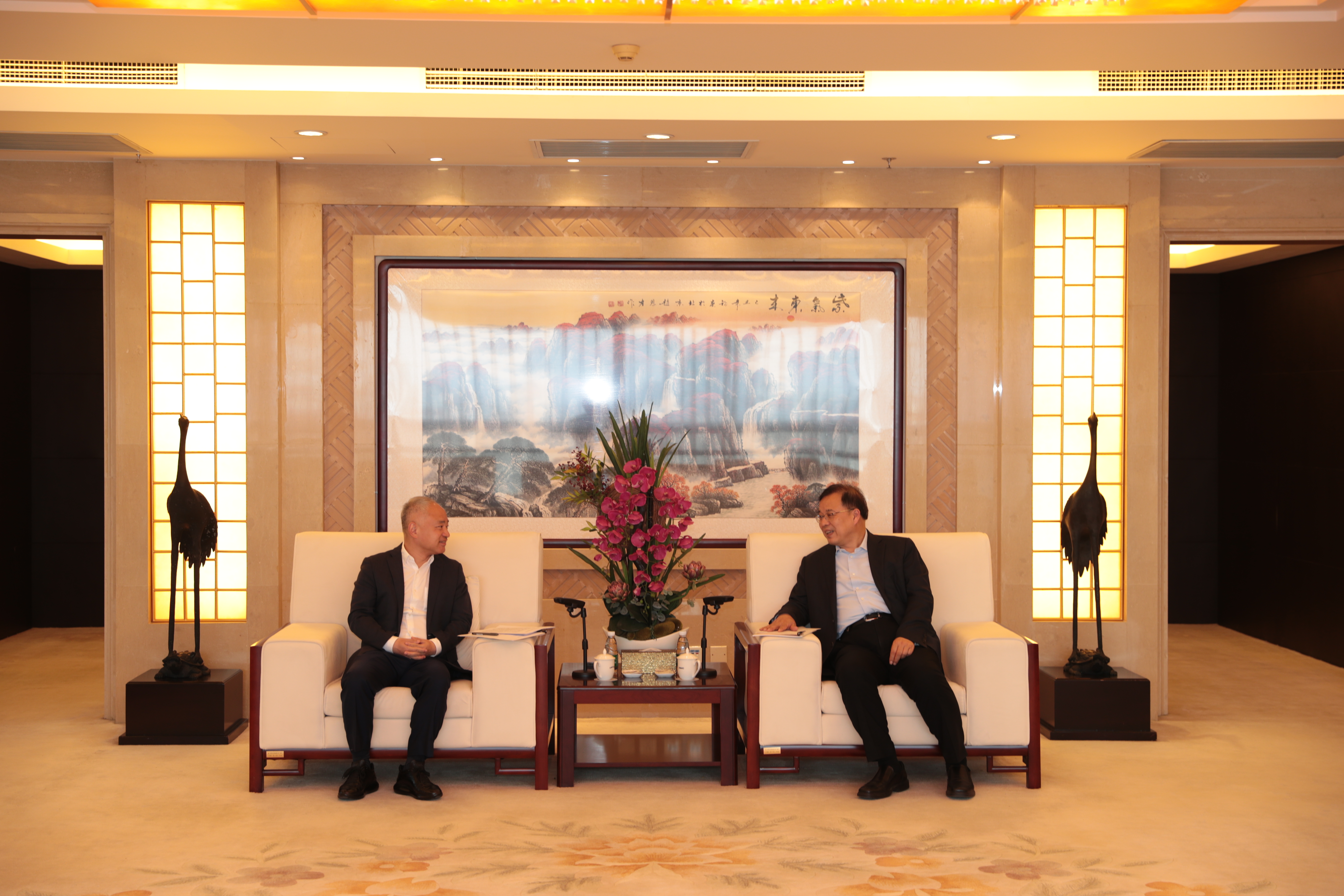 丁晖市长对奚正平董事长的热情接待表示感谢,并简要介绍了海南自贸港的创设历史、目前整体发展情况以及未来规划和各类优势政策。他表示,中国有色集团的国际化程度很高,与海南自贸港高度契合,诚挚邀请中国有色集团一起参与到海南自贸港的建设和发展之中。