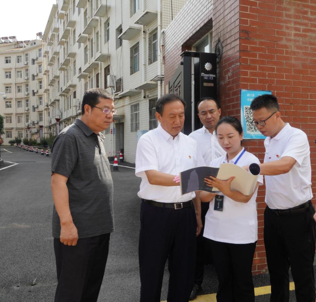 图丨中国机械冶金建材工会副主席关明和中国有色集团党委副书记、工会主席孔繁新检查比赛现场
