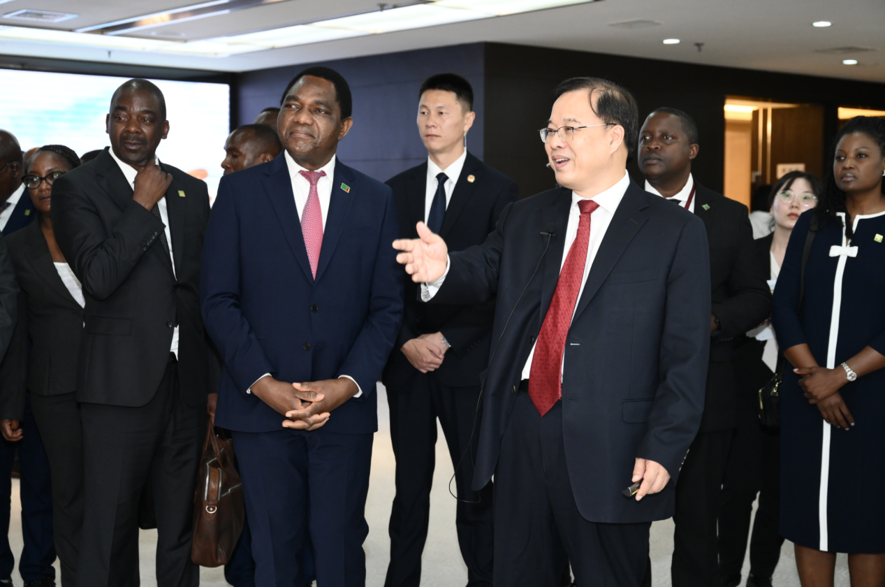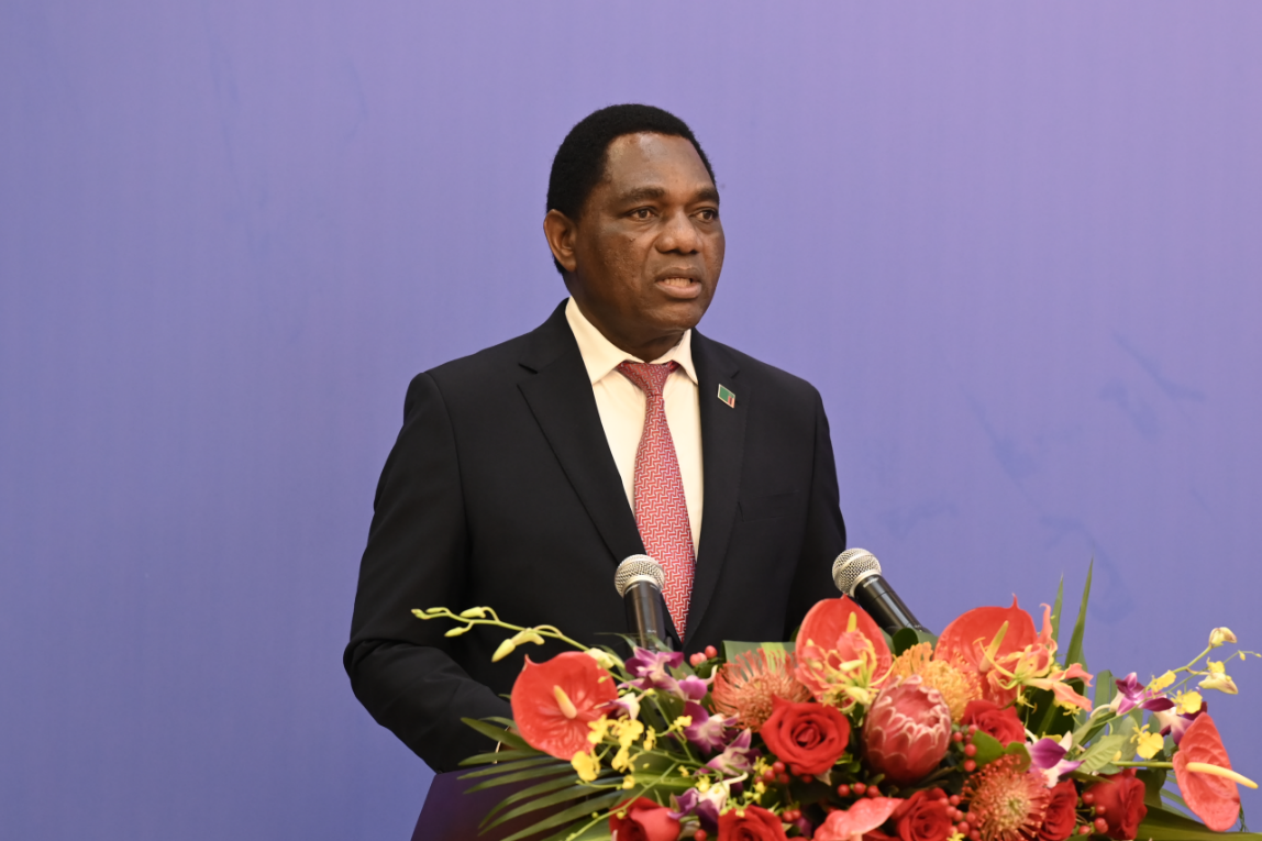 希奇莱马总统在致辞中表示,在习近平主席的卓越领导下,中国实现了繁荣发展,此行一路上都感受到中国的巨大发展变化和中国人民的热情好客,特别是参观的几家企业,让我对中国的科技进步深感赞赏和钦佩。赞比亚政府高度重视经济发展、科技进步和民生改善,拥有丰富的自然资源和良好的投资环境。希望更多优秀的中国企业到赞比亚投资兴业,为赞比亚经济社会发展特别是科技水平提升贡献力量,实现合作共赢。赞比亚政府将一如既往珍视中赞传统友谊,重视营商环境建设,未来也将出台更多吸引投资的政策,为发展好两国的深厚友谊作出更多努力。