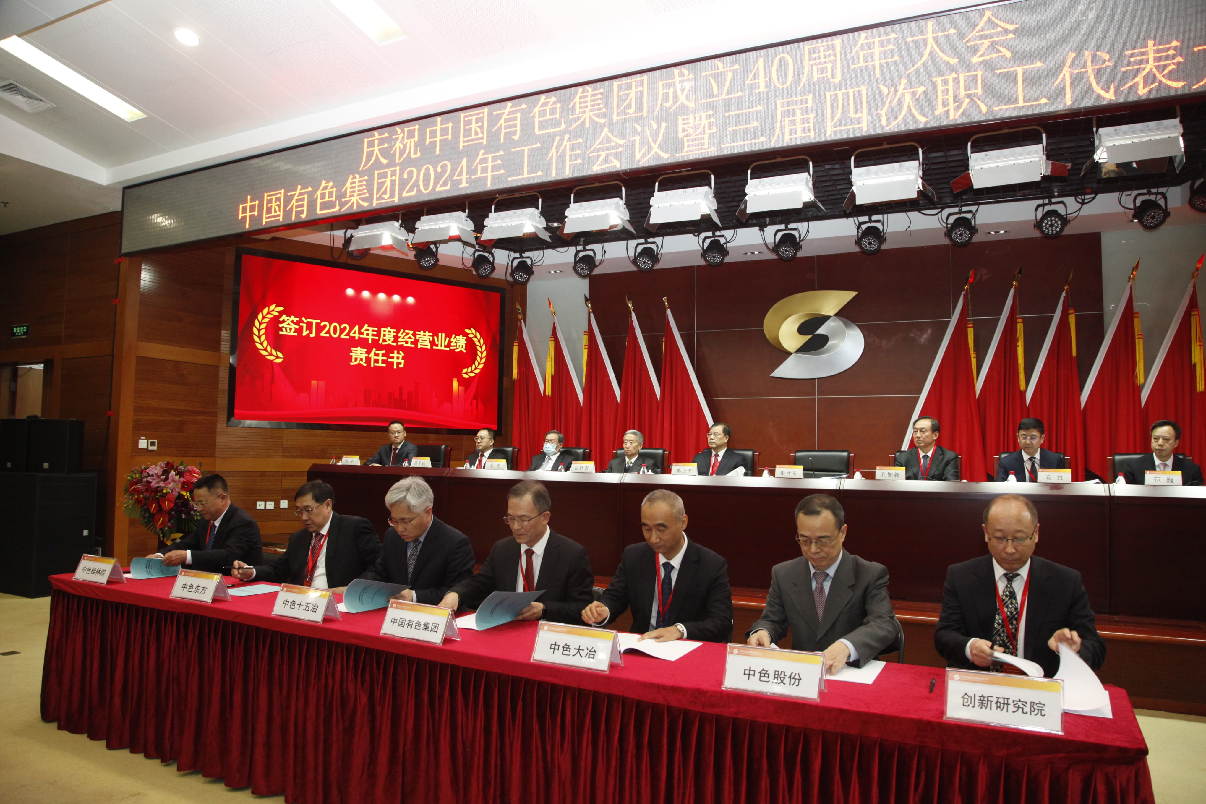 会议还签订了出资企业经营业绩、安全环保、党风廉政建设责任书,进行了交流发言,发布了《中国有色集团贯彻落实习近平总书记三次重要指示批示精神行动方案(2024年版)》《中国有色矿业集团有限公司40周年科技成果纪念册》,通过了《中国有色矿业集团有限公司三届四次职工代表大会决议》。