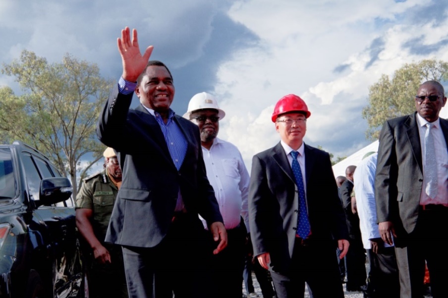 当地时间4月11日,赞比亚总统哈凯恩德·希奇莱马到访中国有色集团在赞比亚出资企业中色卢安夏,深入了解卢安夏新矿(28号竖井项目)工作进展,并出席公司28号竖井抽排水水泵安装下潜仪式。