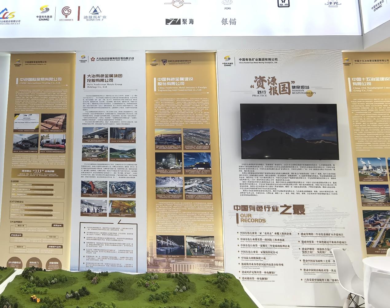 在“走进非洲”展区,集中展示了集团公司作为有色金属行业“走出去”的先行者,立足“资源报国”使命担当,发展成为我国“走出去”开发铜资源时间最长、产业链最完备、项目数量最多中央企业的光辉历程。中国有色集团秉持合作共享理念,全面履行社会责任,准确把握开发资源与保护环境、投资回报与社会稳定,在境外建成了全产业链发展模式,形成了“走出去”的先发优势、人才优势和品牌优势,赢得了项目所在国家地区的高度认可。