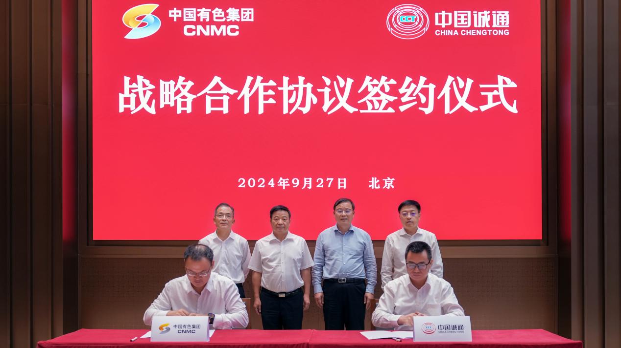 9月27日,中国有色集团与中国诚通在京签署战略合作协议。中国有色集团党委书记、董事长文岗,党委副书记、总经理张晋军;中国诚通党委书记、董事长奚正平,党委副书记、总经理郭祥玉现场见证签约。中国诚通党委副书记、总经理郭祥玉主持签约仪式,中国有色集团党委委员、副总经理刘宇和中国诚通党委委员、副总经理童来明代表双方签约。