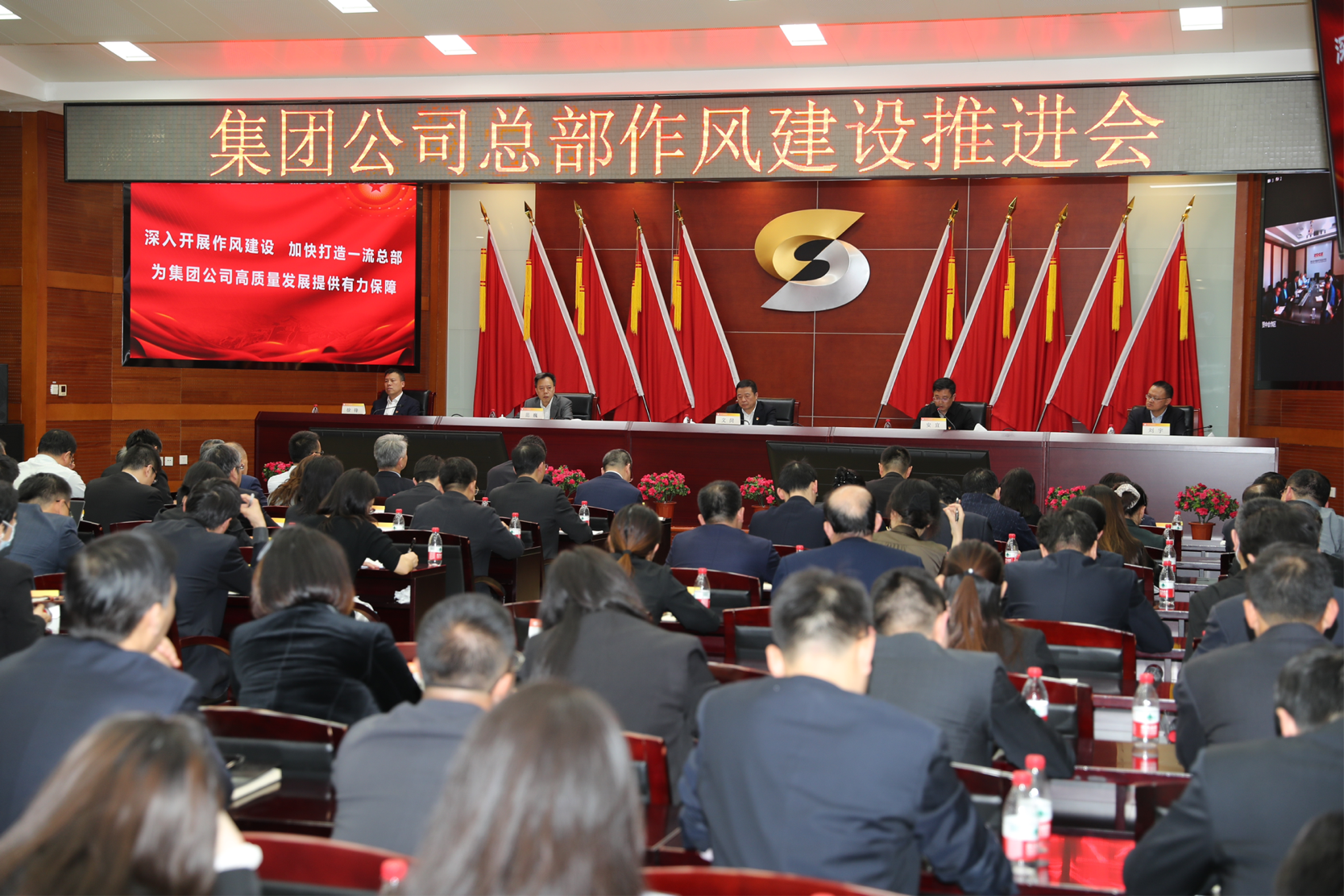 会议以现场和视频相结合的形式召开,集团公司领导班子成员、高级管理人员和总部全体干部职工参加会议。