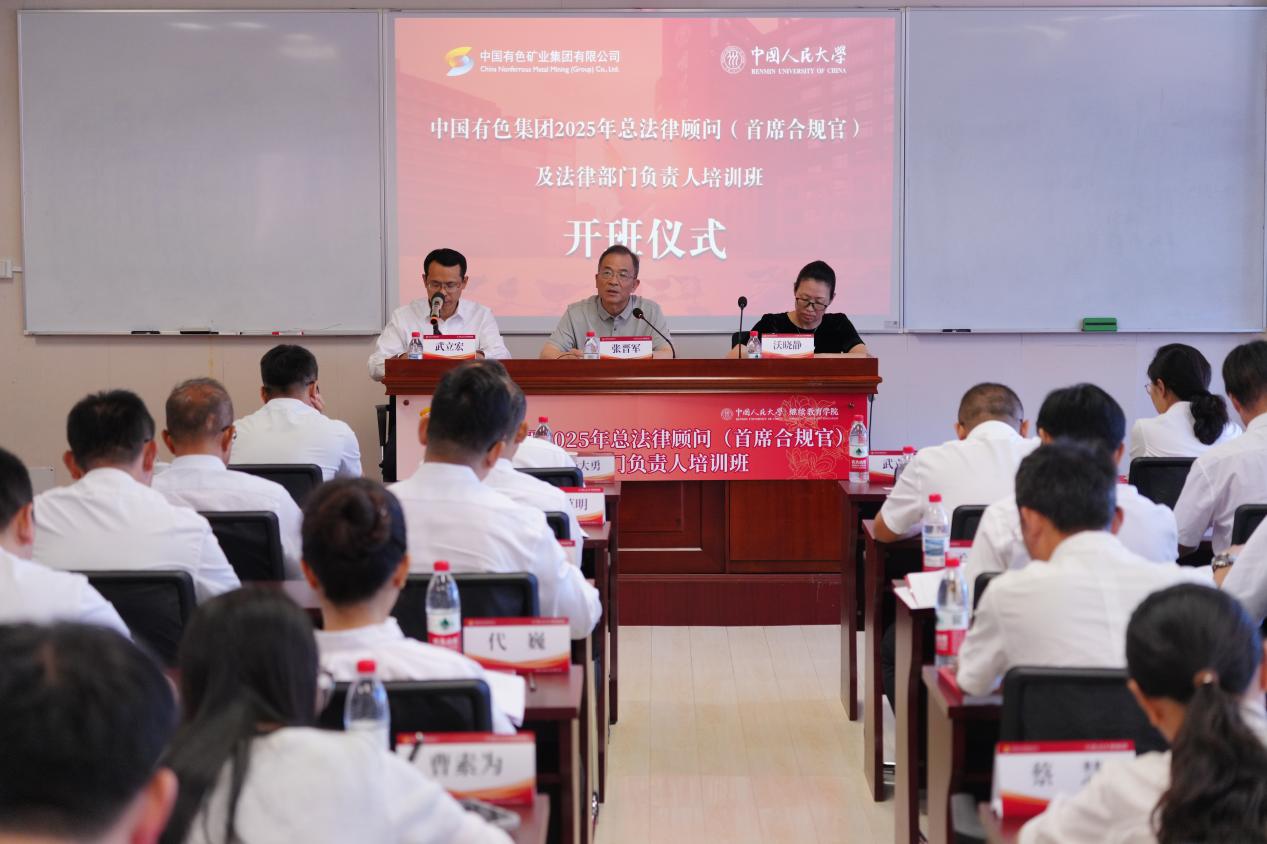 9月8日,中国有色集团2025年总法律顾问(首席合规官)及法律部门负责人培训班在中国人民大学正式开班。中国人民大学法学院党委书记沃晓静出席并致辞。集团公司党委副书记、总经理张晋军出席开班仪式并讲话。