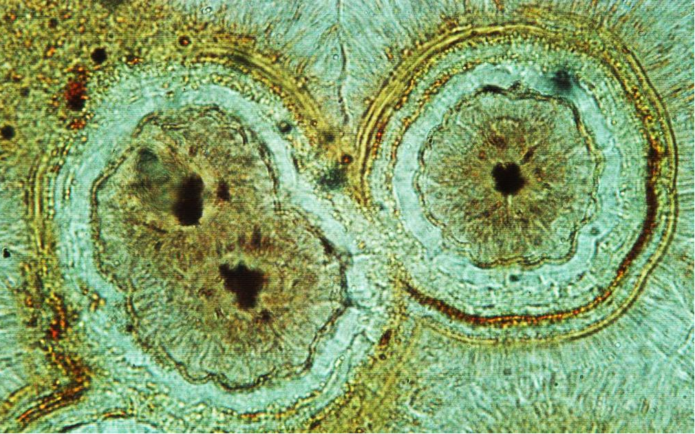 显微镜下的猫头鹰与花环(广西硅质玉)