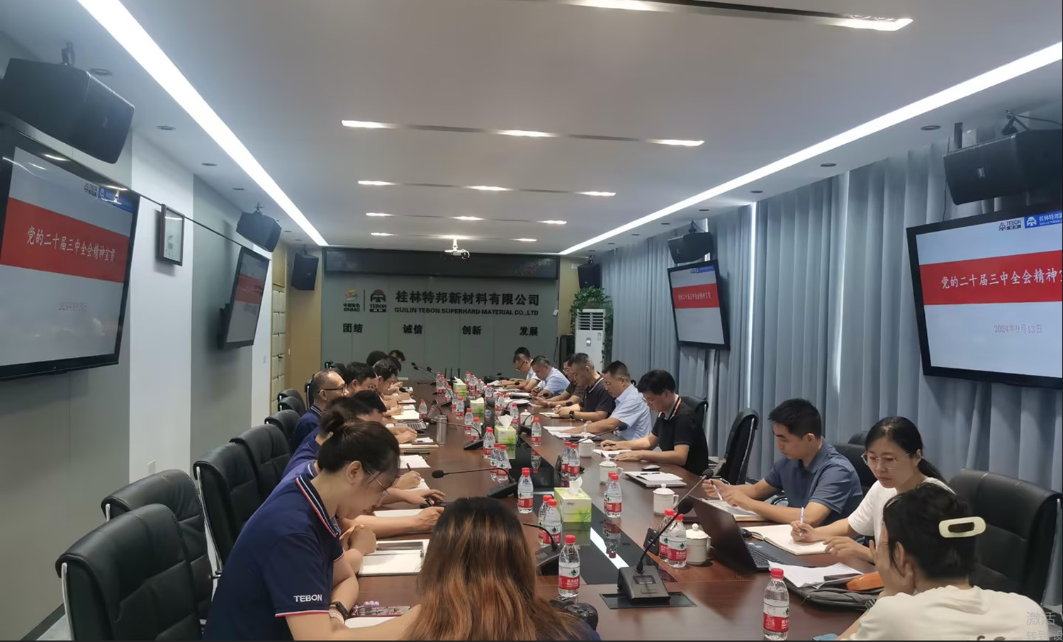 9月13日,william英国中文官网党委书记、董事长、总经理杨国高到特邦新材调研指导工作,作党的二十届三中全会精神专题宣讲。william英国中文官网党委委员、总会计师刘宗勇,党委委员、副总经理胡乔帆,党委委员、董事会秘书、党群综合办主任李年友及相关部门负责人陪同调研。