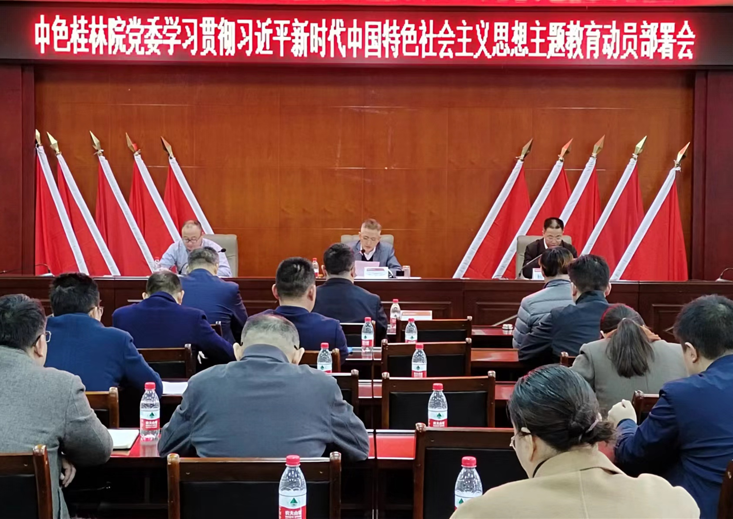 会议认为,在全党深入开展学习贯彻习近平新时代中国特色社会主义思想主题教育,是党中央为全面贯彻党的二十大精神、动员全党同志为完成党的中心任务而团结奋斗所作的重大部署,是深入推进新时代党的建设新的伟大工程的重大部署。习近平总书记的重要讲话,深刻阐述了开展主题教育的重大意义和目标要求,对主题教育各项工作作出全面部署,为全党开展主题教育提供了根本遵循。作为国之央企,我们要深入学习领会习近平总书记重要讲话精神,充分认识开展主题教育的重大意义,切实增强抓好主题教育的思想自觉、政治自觉和行动自觉,认真贯彻集团公司党委关于主题教育的要求,深刻认识和领会开展主题教育是推动全党上下统一思想、统一意志、统一行动的重大举措,也是桂林院深化落实习近平总书记三次重要指示批示精神、践行国家“走出去”战略的现实需要;深刻认识和领会开展主题教育是激励党员干部敢于担当、敢于斗争、敢于创新的迫切需要,也是桂林院做强做优大地质、做精做专新材料,以“人才+科技”为切入点,打造具有全球竞争力一流高科技企业的迫切需要;深刻认识和领会开展主题教育是坚持管党治党严的基调、严的措施、严的氛围的内在要求,也是桂林院打造“三个融合”党建品牌、以高质量党建引领保障高质量发展的现实需要。