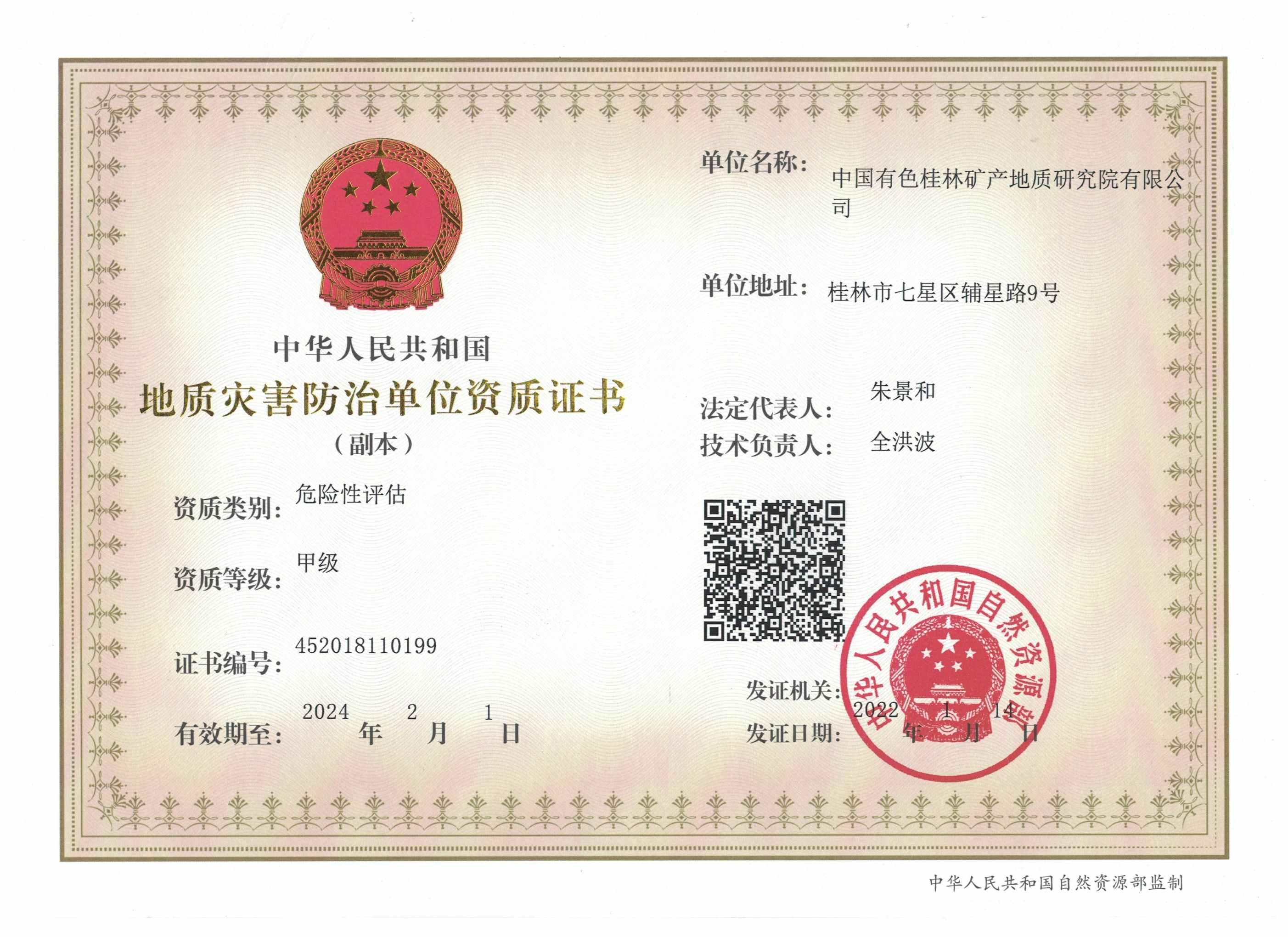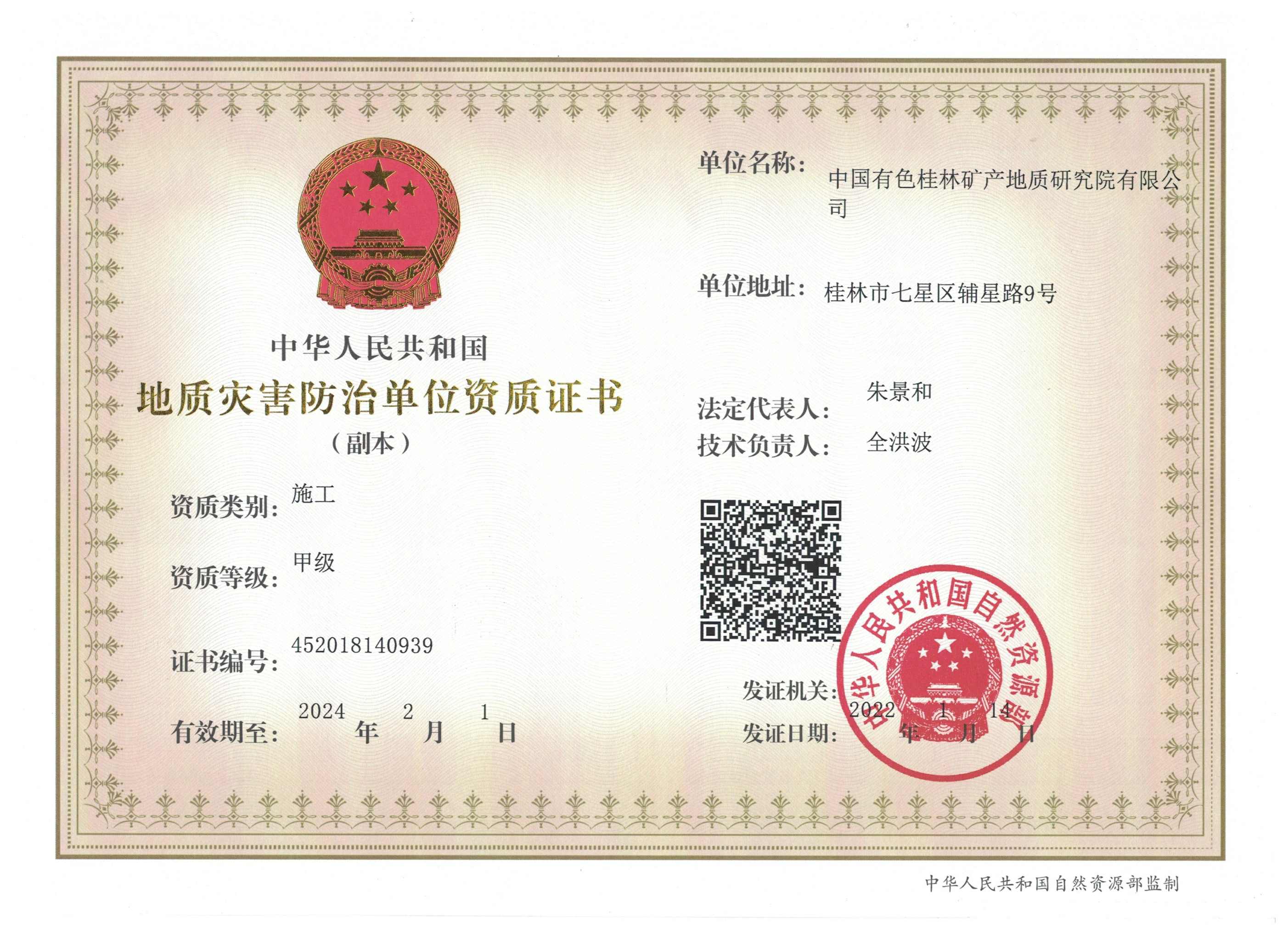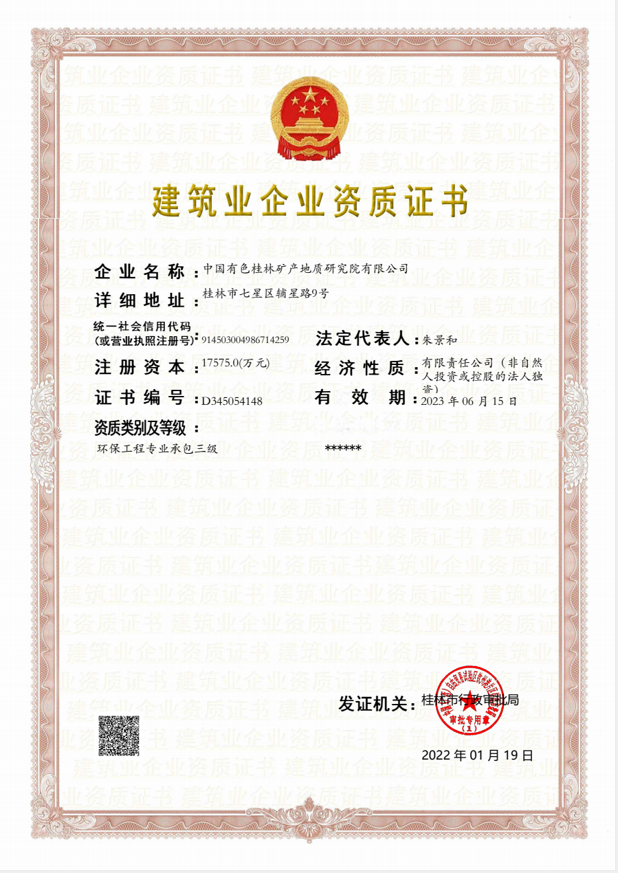 | 2016.11.14-2022.11.13 | 广西壮族自治区住房和城乡建设厅 | 工程 公司 | 桂林矿产地质研究院工程有限公司 |