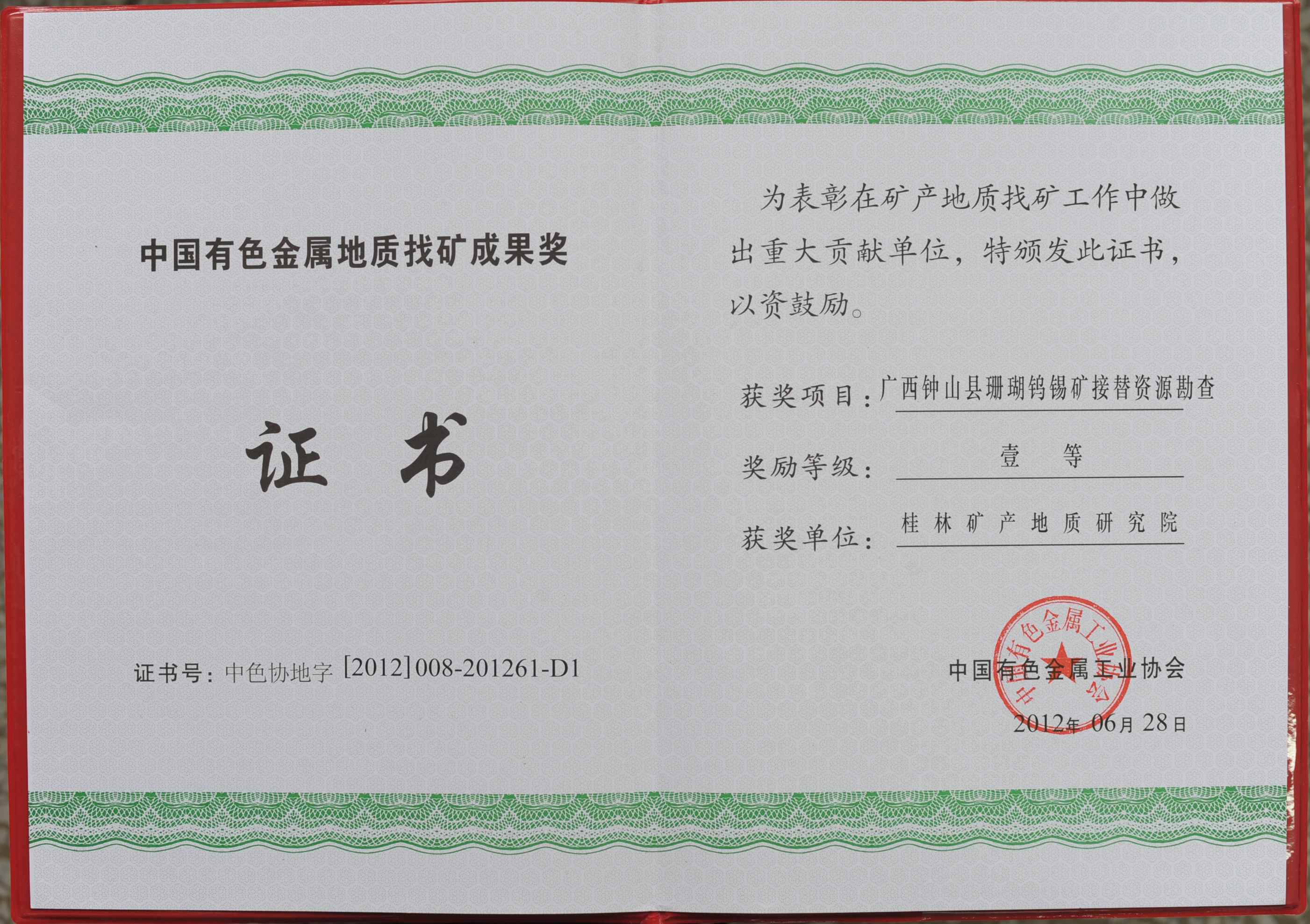 中国有色金属工业总公司科技进步奖一等奖-1992年