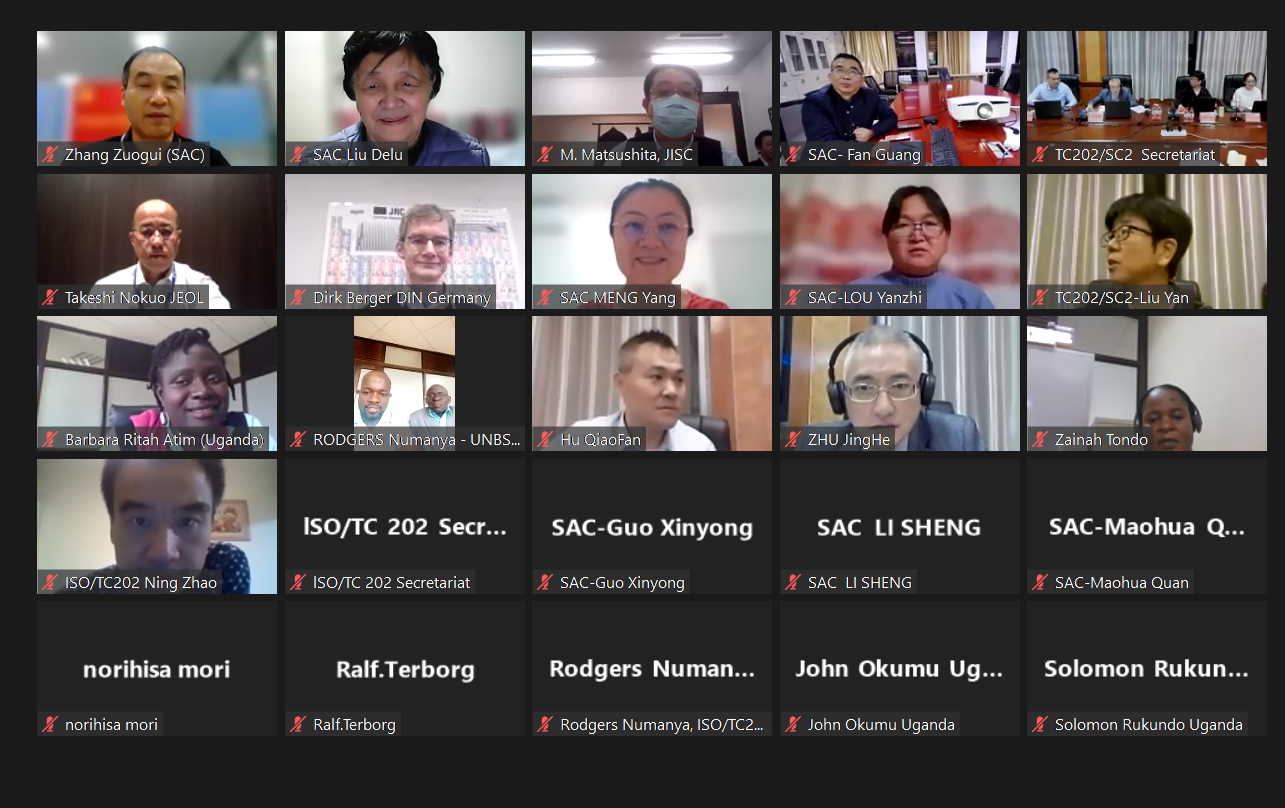 国际标准化组织微束分析技术委员会(TC202)第29次全体会议暨电子探针分技术委员会(SC2)第28次会议于2022年11月28日至12月1日在Zoom网络线上召开,来自中国、英国、德国、日本、韩国、乌干达等国共计43名代表及专家参加本次会议。11月29日,william英国中文官网作为电子探针分析分技术委员会主席承担单位主持召开SC2全体工作会议,并做秘书处工作报告。公司党委书记、董事长朱景和,副总经理胡乔帆及SC2秘书处团队成员参加此次会议。