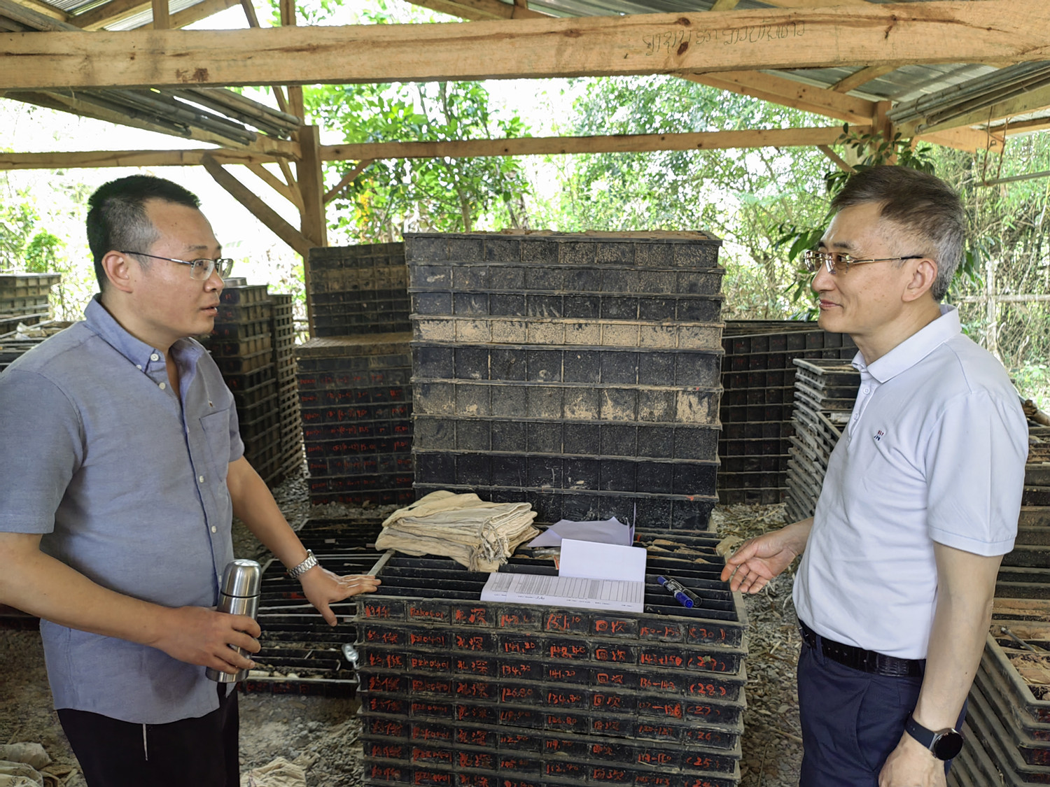 4月17日,朱景和书记一行深入施工现场指导工作,强调安全重于泰山,牢记责任意识,并详细了解了地质、物探、化探等工作原理,考察了样品加工间、岩心库等现场,提出了相关工作建议。朱景和充分肯定了项目部技术人员在空白区且矿体属于隐伏矿的情况下,通过综合分析研究及技术手段,完成找矿突破。老挝川圹项目目前已探获1中型锡多金属矿床,找矿前景可达大型规模。