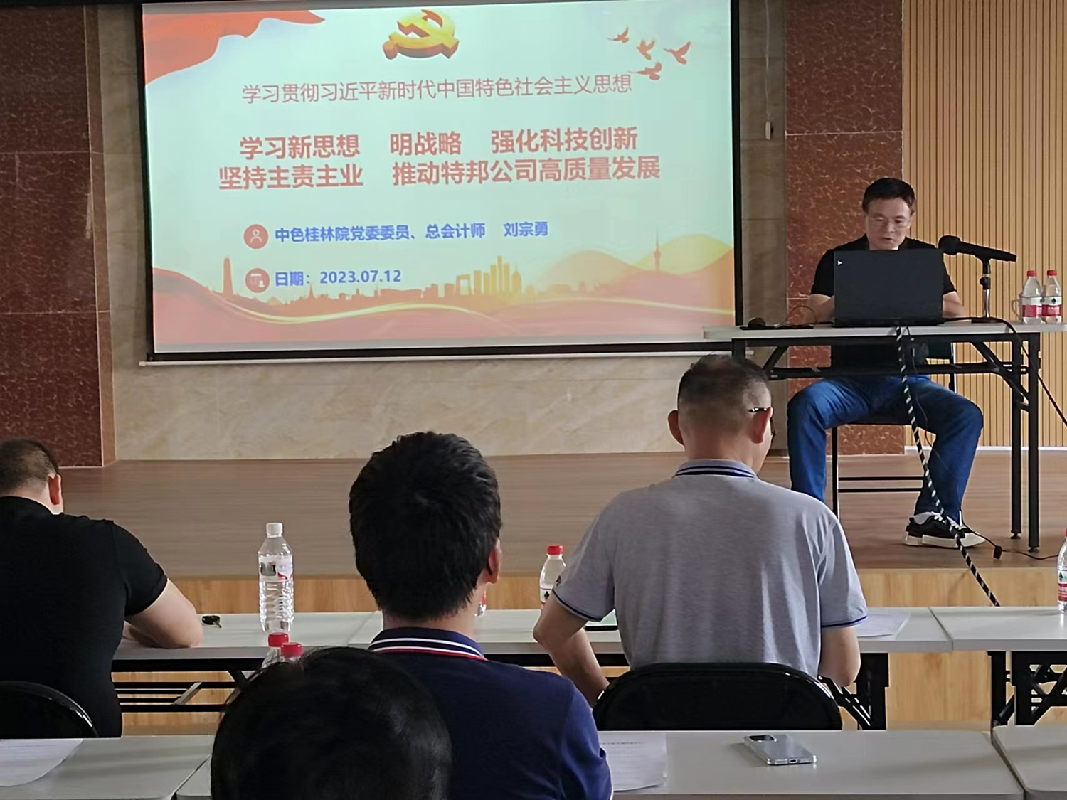 刘宗勇总会计师围绕“六个必须坚持”阐释了习近平新时代中国特色社会主义思想的核心要义与丰富内涵。他指出,在当前经济社会发展的大背景下,遵循主责主业的原则,发挥自身优势,进行守正创新,将有助于特邦公司的长远发展。一要确保专业优势,只有在自身专业领域具有竞争力,才能在市场竞争中立足并不断发展壮大;二要适应市场需求,只有及时适应市场变化,满足客户需求,才能提高自身市场竞争力;三要提高科研成果转化能力,推动产学研一体化的发展;四要保持人才优势,不断吸引和留住材料领域的专业人才,为特邦公司的发展提供强大的智力支持;五要增强社会影响力,在大材料领域树立良好的品牌形象,扩大知名度,从而提高特邦公司在社会中的影响力和认可度。