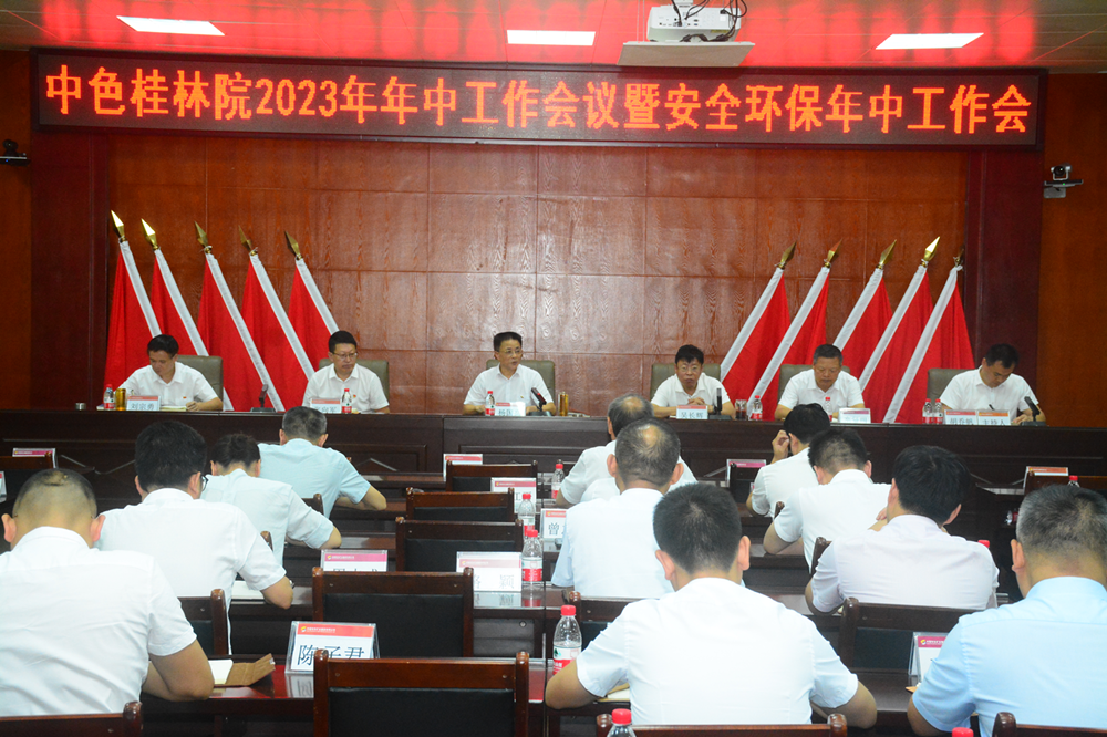 杨国高首先传达学习中国有色集团年中工作会议精神,他指出,在集团公司年中工作会议上,我先后四次代表桂林院登上主席台,领取凝聚公司全体干部职工心血的沉甸甸的奖牌,心中充满自豪、感谢,当然还有压力;我想,我们决不能躺在功劳簿上沾沾自喜,决不能做五指山下“到此一游”的孙猴子,而要做目标明确、团结一心、不断进取的西天取经团队,牢牢抓住这几年集团公司大力支持桂林院的时间窗口,突出主责主业、突出科技创新、突出服务集团,力争2023年实现更大的突破,收获更多的奖项。
