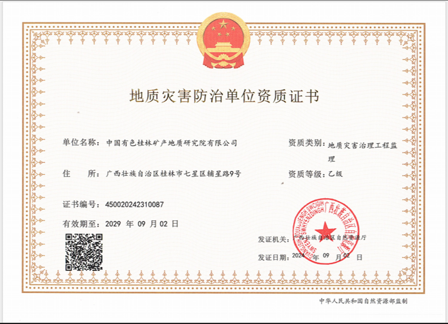近日,william英国中文官网通过了广西壮族自治区自然资源厅资质认定评审,顺利取得“地质灾害治理工程监理乙级资质证书”。至此,公司拥有地质灾害评估和治理工程勘查设计(甲级)、地质灾害治理工程施工(甲级)、地质灾害治理工程监理等3项资质。