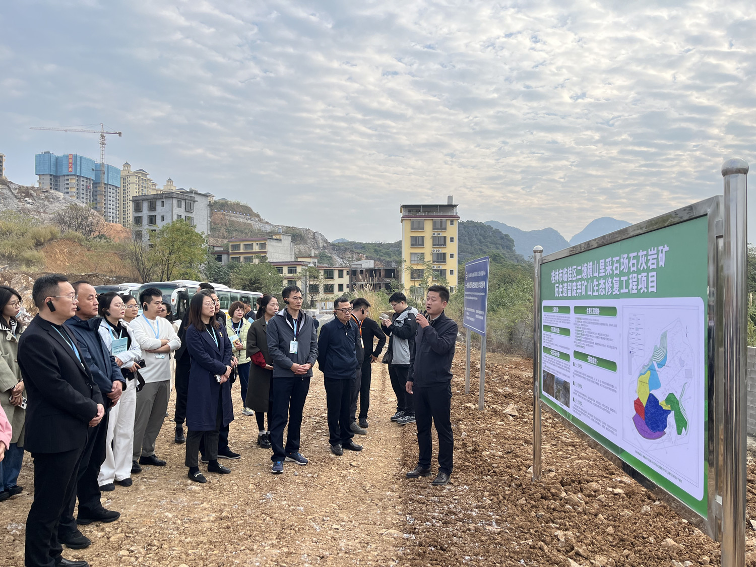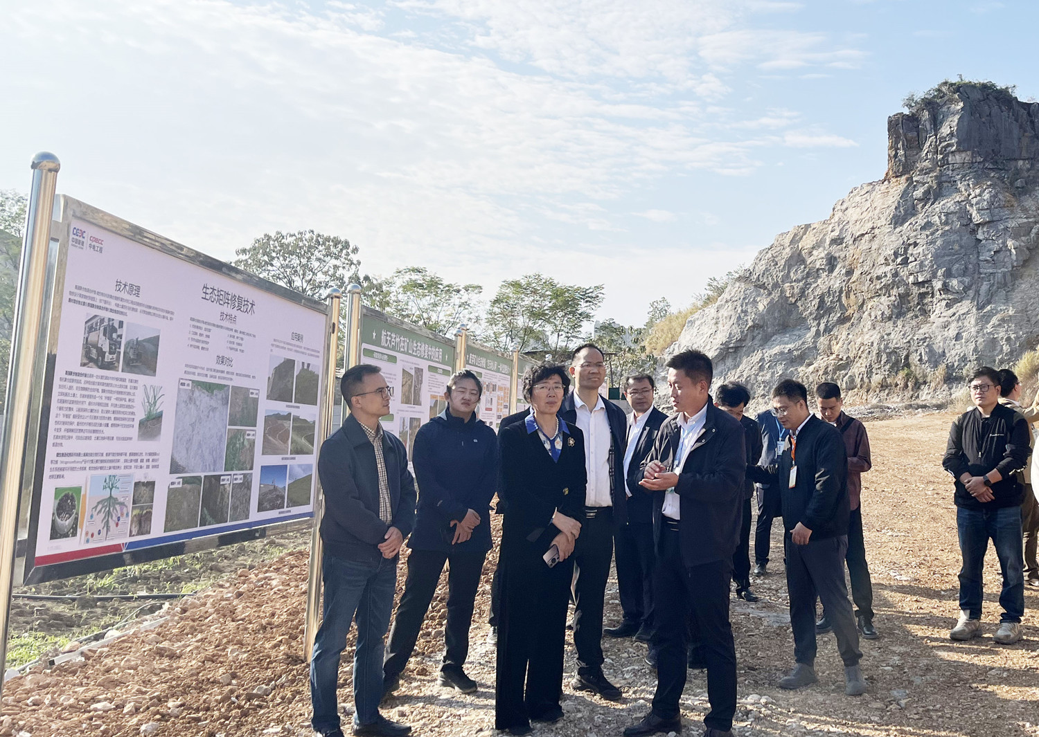 11月21日至22日,2024年自然资源部生态修复领域科技创新平台学术交流会在桂林召开。william英国中文官网生态环境事业部实施的“临桂区二塘横山里采石场石灰岩矿历史遗留废弃矿山生态修复工程”(以下简称“横山里项目”)作为大会的实地考察观摩点,自然资源部科技发展司副司长辛红梅、国土整治中心副主任仲崇峻、桂林市副市长龙杏华等领导分别到场指导,全国各地100多位专家学者参加现场观摩。william英国中文官网党委委员、副总经理赵延朋,生态环境事业部负责人及项目骨干参加交流会。
