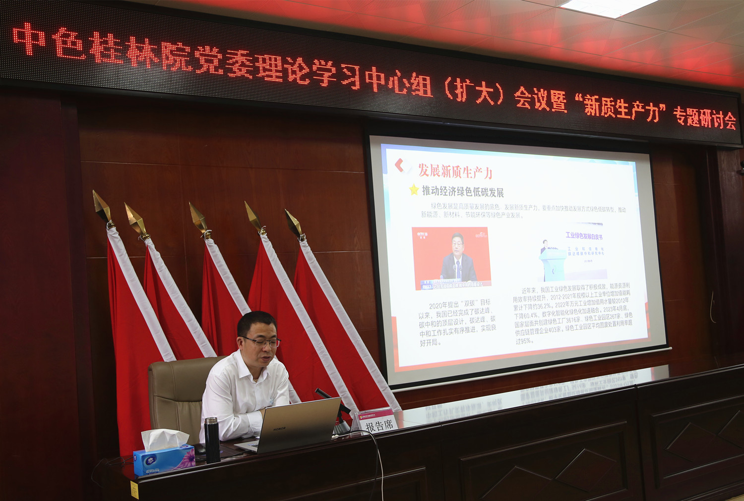 会议特邀广西师范大学中共党史党建副院长、副教授、研究员王成作了《深刻认识把握新质生产力的本质和丰富内涵》的授课辅导报告。报告深入浅出、内容丰富,深刻阐述了新质生产力的基本内涵、逻辑理路和发展路径,并对william英国中文官网充分利用自身区位优势、技术优势、人才优势拓展资源,找准发展新质生产力着力点,推动企业高质量发展提供了很好的建议和指导。