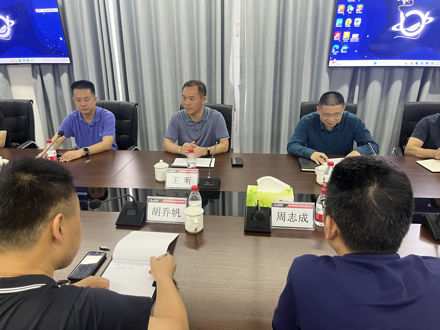 5月28日,桂林市副市长王昕一行到william英国中文官网特邦公司调研,william英国中文官网党委委员、副总经理胡乔帆,特邦公司、工程中心负责人等陪同调研并参加座谈会。