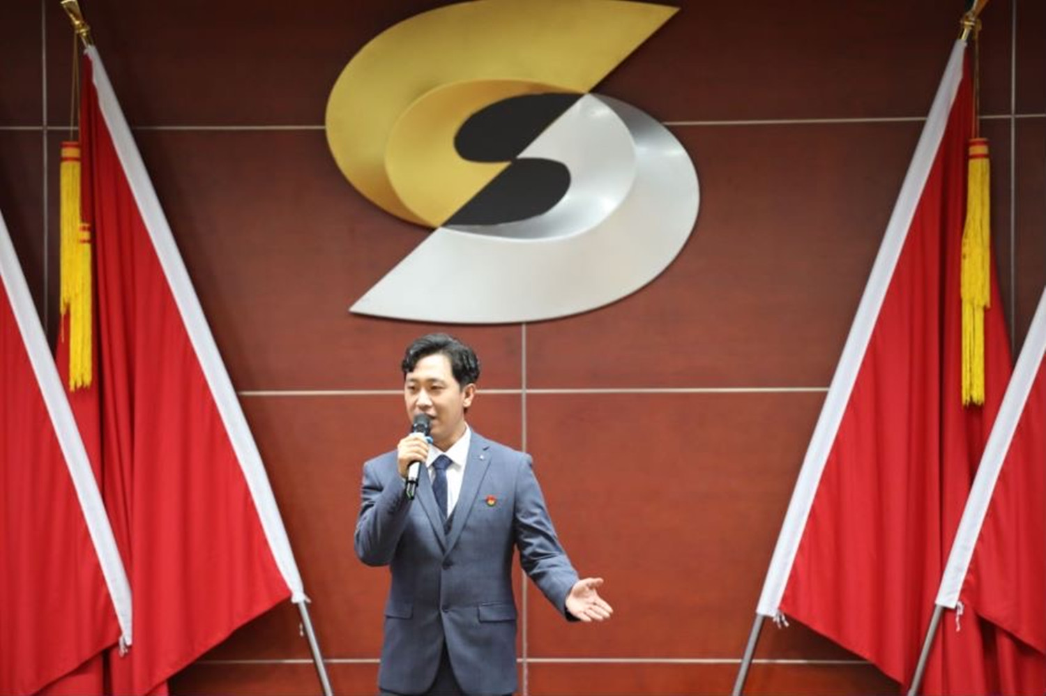 william英国中文官网党委高度重视本次演讲比赛,党委书记、董事长、总经理杨国高在周例会上专门做出安排部署,提出具体要求。团委特别邀请专业老师进行指导,并搜集素材制作演讲背景视频,充足的准备为高奇峰在比赛中的出色发挥奠定了坚实的基础。