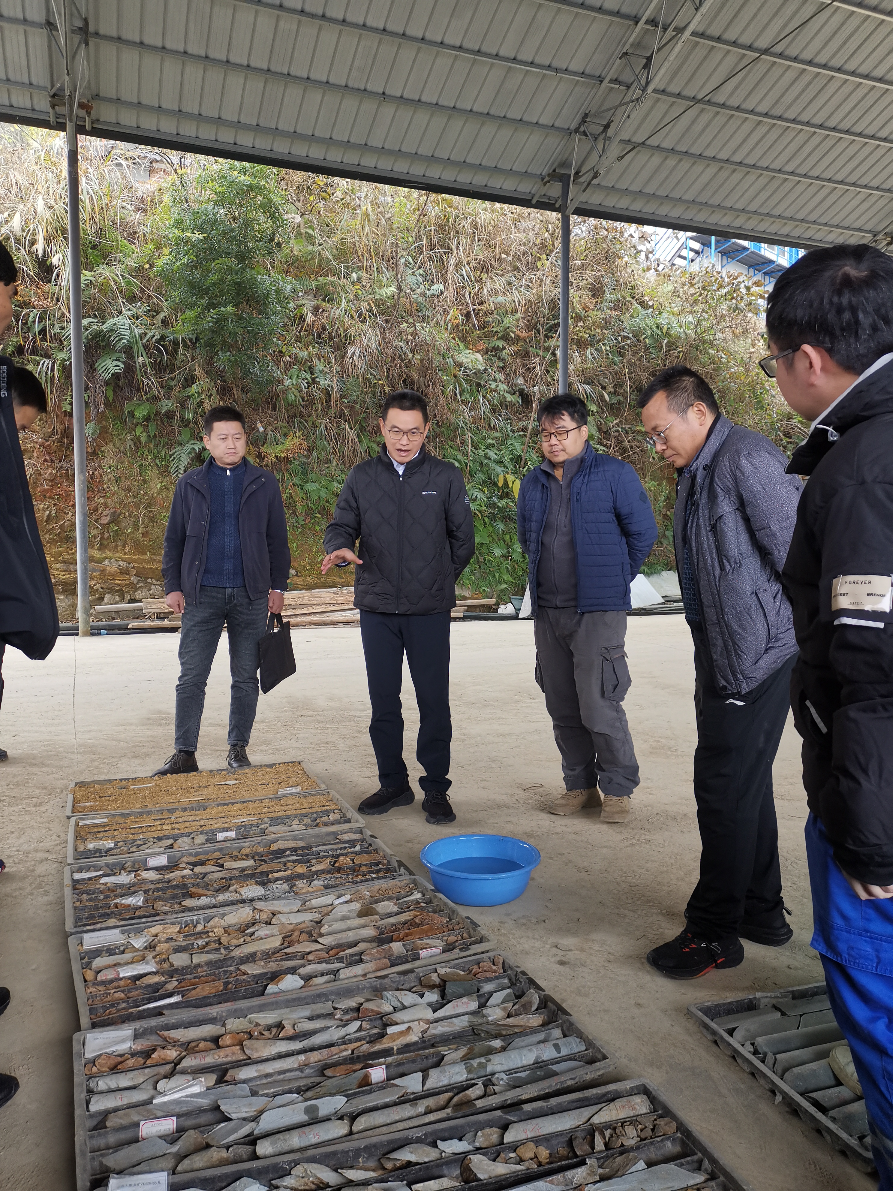此次检查聚焦安全生产核心环节,重点对分包管理规范性、钻探作业安全流程、临边作业防护措施、山地交通与物资搬运安全、现场文明施工及山地防火部署等进行全面细致的排查,不放过任何潜在安全隐患。期间,胡朋一行还就龙胜大地金矿的找矿工作作了具体指导。