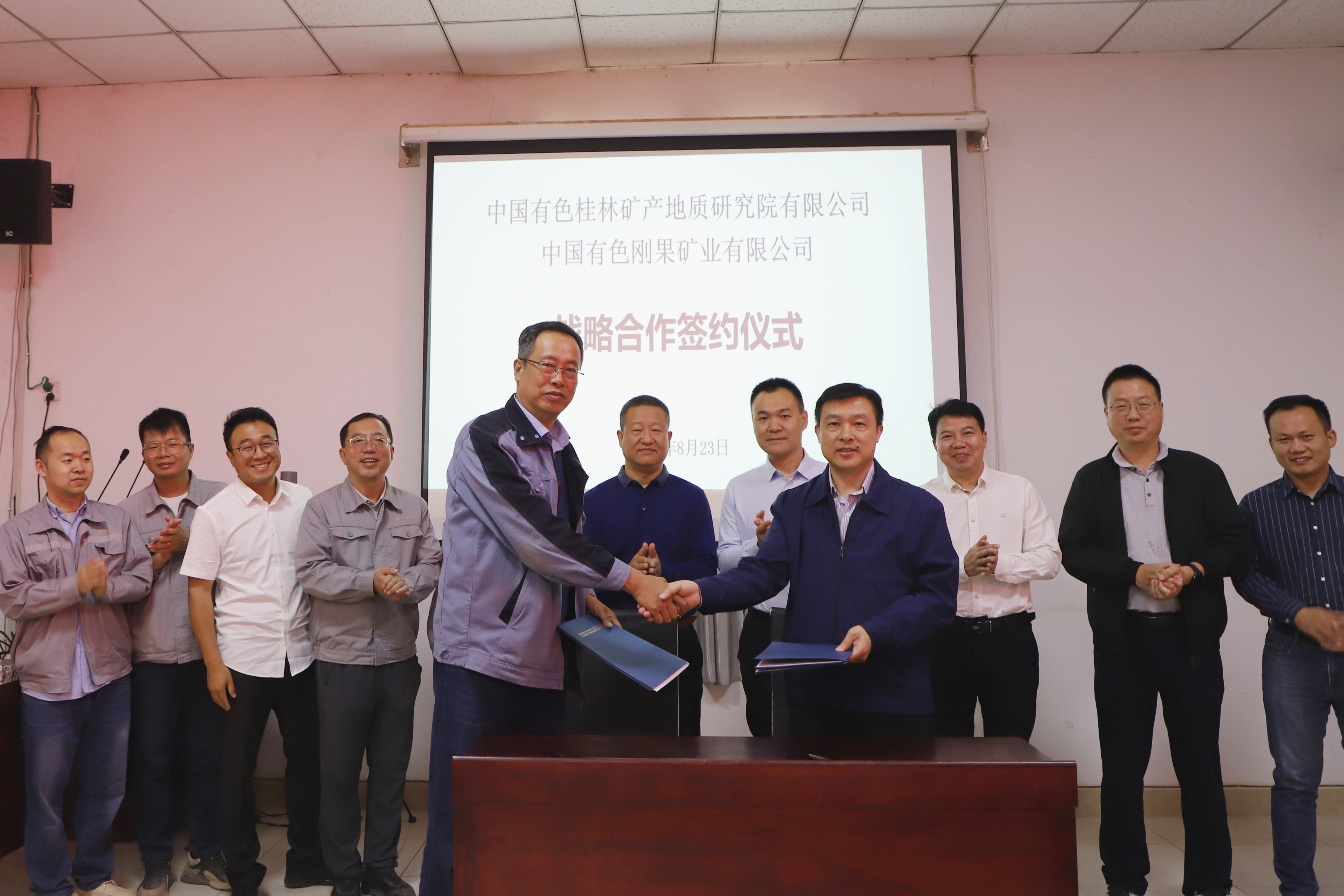 在中色刚果,基于双方长期良好稳定的合作基础,卢宗柳董事长与于文圣总经理签订了《矿山综合地质合作协议》。下一步双方将在风险勘查、矿山深边部和生产(含基建)探矿、水工环地质工作、环境治理及资源综合利用、科研项目联合申报等方面共同发力,取得更好合作成效。